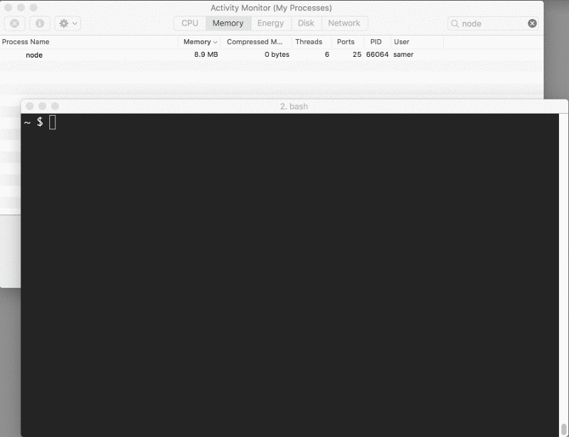 Well, let’s see what happens when we run the server, connect to it, and monitor the memory while doing so.