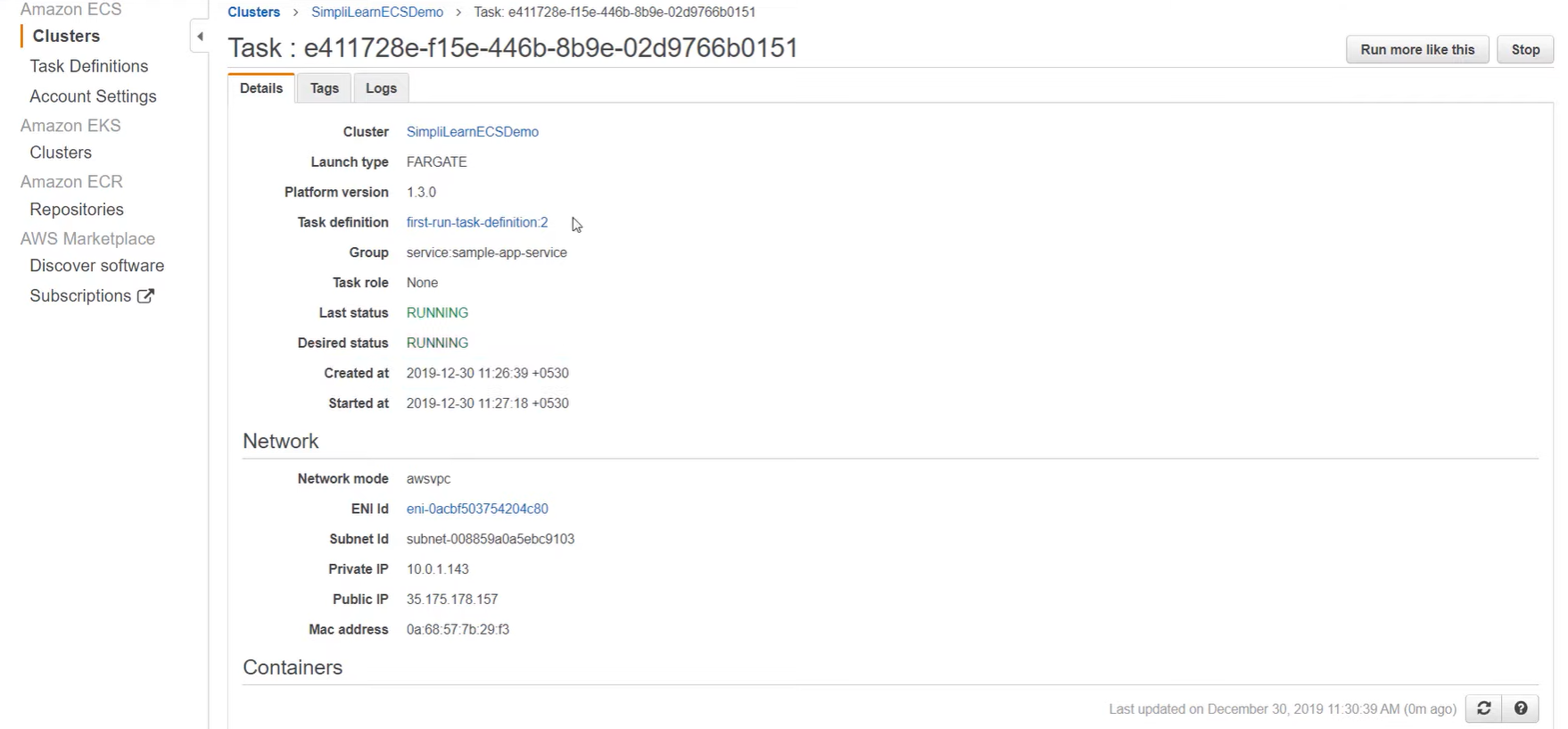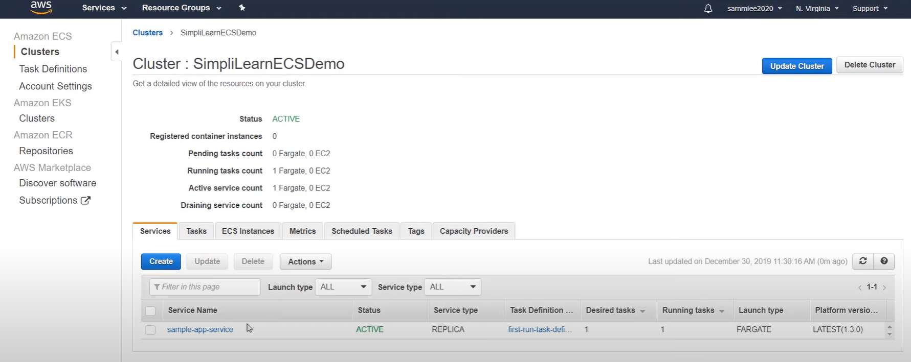 1. Goes to Amazon ECS and then click clusters and click my cluster