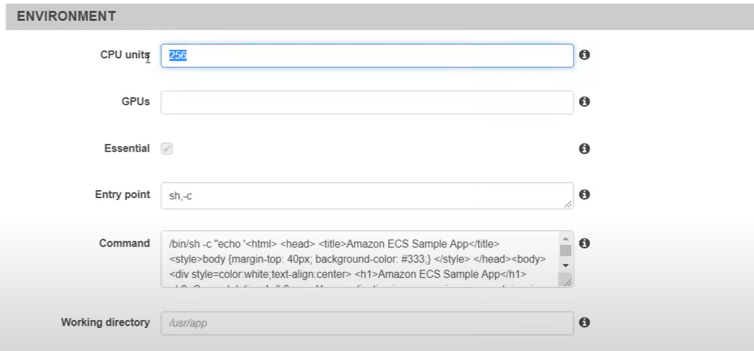 - Environment to make a command. (Basic is Amazon ECS Sample App) >> You can replace it with your own content.