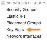 The navigation pane is on the left side of the console. If you do not see the pane, it might be minimized; choose the arrow to expand the pane. You may have to scroll down to see the Key Pairs link.