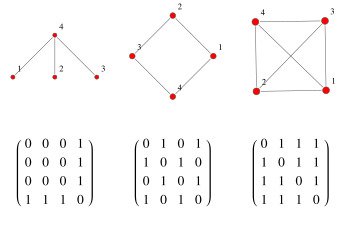 An adjacency matrix is an NxN boolean matrix (where N is the number of nodes), where a true value at matrix[ i ][ j ] indicates an edge from node i to node j. (You can also use an integer matrix with 0s and 1s.)