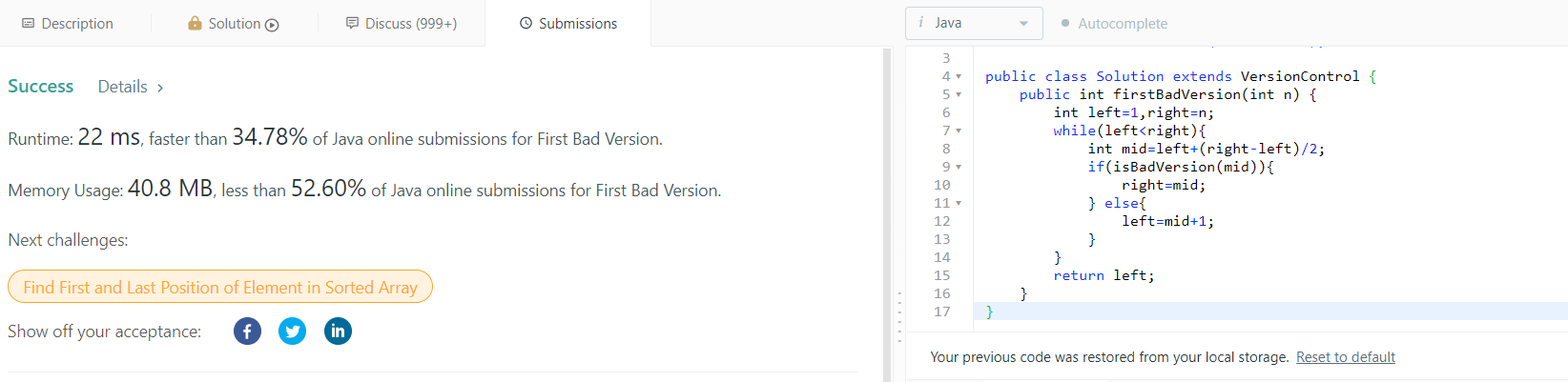 - 1 <= bad <= n <= 231 - 1