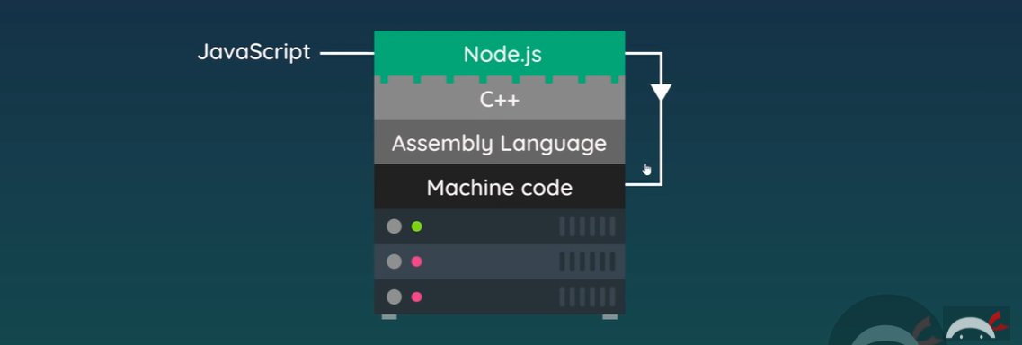 it connects between machine and javascript because it's written in C++