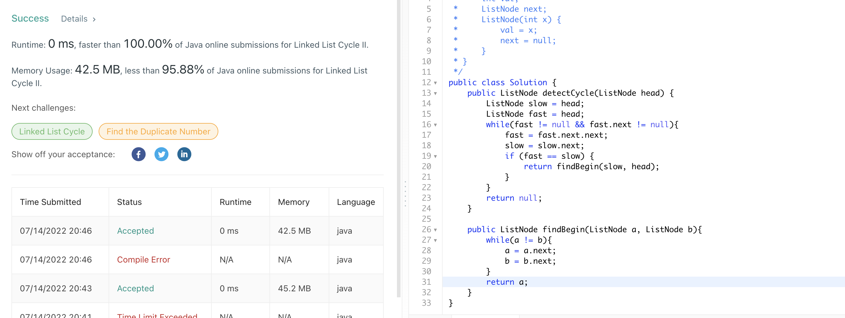 Given the head of a linked list, return the node where the cycle begins. If there is no cycle, return null.